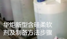 华炬科技新产品研究所技术咨询委员会科研人员现推荐一项一种新型含硅柔软剂及制备方法步骤,该技术的有益效果是 (1) 该技术制备的一种新型含硅柔软剂外观为:白色乳液,pH为5.0-6.0,有效物含量为:25~30%,1:9水乳液24h不分层,产品具有较好的放置稳定性,在室温存放6个月不变质,具有较好的耐稀释稳定性。 (2)本方法制备的含硅柔软剂分子中既含有植物油基碳氢长链,也含有聚硅氧烷链段以及季铵盐基团,产品具有较好的耐稀释稳定性和放置稳定性。 (3)本方法制备的含硅柔软剂原料来源广泛,绿色环保,经其处理后的织物手感丰满、顺滑,柔软度和耐久性好,织物的蓬松度有较大提高,现将该一种新型含硅柔软剂及制备方法步骤及技术方案及实施例介绍如下供研究交流参考:(711421 435538)
