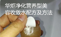 华炬科技新产品研究所技术咨询委员会科研人员现推荐一项一种净化营养型美容收敛水配方及方法,该技术的目的在于提供一种具有净化抗炎、美容养颜的营养型美容收敛水,对皮肤具有良好的深层清洁、滋润保湿的效果,该技术所述各原料的用量和理化性质产生协调作用,积极效果在于:清洁滋养肌肤;PH值与人体皮肤的PH值接近,对皮肤无刺激性;使用后明显感到舒适、柔软,无油腻感,具有明显的净化抗炎、美容养颜效果,现将该一种净化营养型美容收敛水配方及方法及技术方案及实施例介绍如下供研究交流参考:(411611 221671)