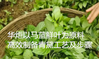 华炬科技新产品研究所技术咨询委员会科研人员现推荐一项一种以马蓝鲜叶为原料高效制备青黛工艺及步骤,该技术的有益效果: (1)通过对叶柄、马蓝老枝浸泡液预处理,提前使马蓝叶内微生物增殖能缩短马蓝鲜叶浸泡时间,提前处理浸泡液能缩短青黛生产周期,及提高青黛转化率。(2)通气搅拌使溶液中氧气含量增加,促进靛前体物质转化为生成靛蓝、靛玉红的中间体,增加靛蓝靛玉红的含量,利用NaOH调节PH可以减少碳酸钙的用量,便于青黛后期除杂纯化,提高青黛得率,现将该一种以马蓝鲜叶为原料高效制备青黛工艺及步骤及技术方案及实施例介绍如下供研究交流参考:(441231 234337)