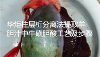 华炬科技新产品研究所技术咨询委员会科研人员现推荐一项柱层析分离法提取羊胆汁中牛磺胆酸工艺及步骤,该技术的有益效果为:1、该技术以羊胆汁作为提取原料,羊胆汁原料广泛易得,羊胆汁较牛胆汁价格便宜,不仅降低了牛磺胆酸的提取成本,而且由于羊胆汁中杂质含量少,羊胆汁中的牛磺酸结合物比例高于牛胆汁,因此从羊胆汁提取牛磺胆酸,工艺更为简单,收益更高。2、该技术以柱层析分离法提取牛磺胆酸,羊胆汁经过沉淀、盐析和萃取步骤可除去大量蛋白质等杂质,减轻了柱层析分离时的阻力,缩短了工艺周期,柱层析分离纯化效果好,提取的牛磺胆酸精品无腥味、纯度高,且产品收率高,提取工艺简单,利于工业化大生产,现将该柱层析分离法提取羊胆汁中牛磺胆酸工艺及步骤及技术方案及实施例介绍如下供研究交流参考:(311271 361541)